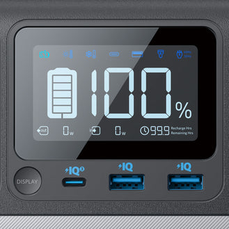Easily check your charging status with an informative LED display. Keep track of the cell capacity, current input and output, and the estimated time for the power station to recharge.