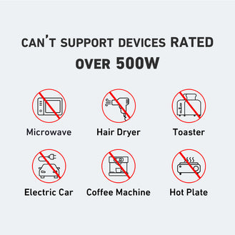 Please note that the power station only supports devices and appliances with a rating less than 500W.