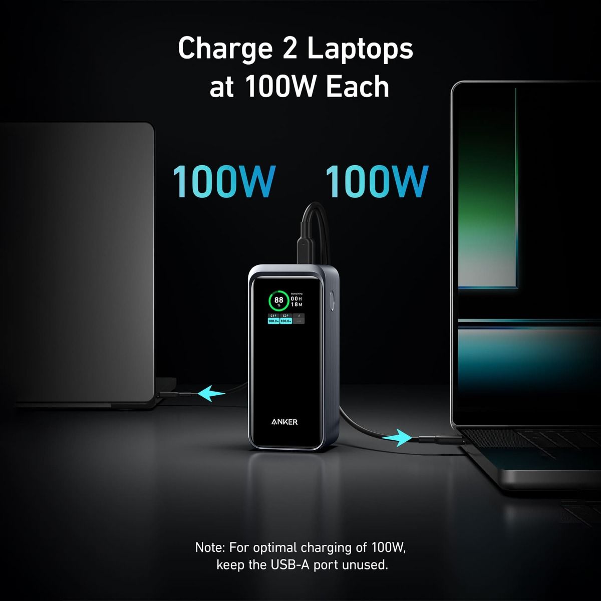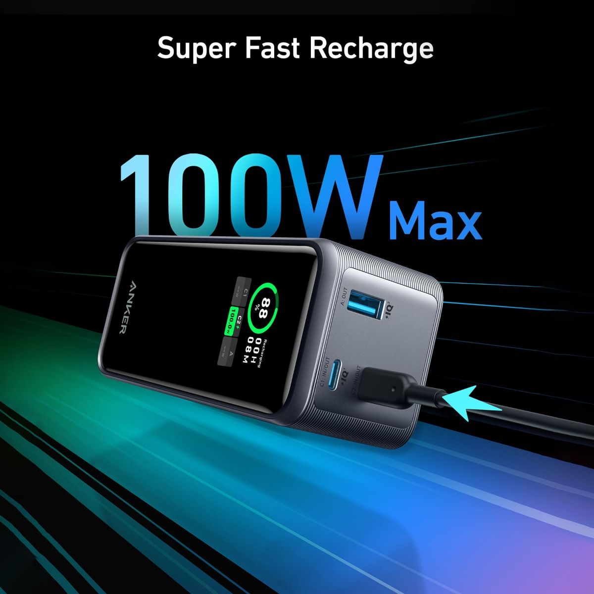 Recharge the power bank up to 100W via the USB-C port for uninterrupted power whenever and wherever.
