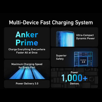 Ultra-Compact Dynamic Power, Superior Safety, Power Delivery 3.0, Max Charging Speed for Every Port and Powers 1000+ Devices.