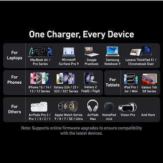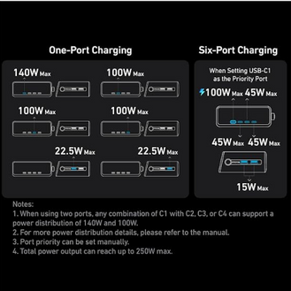 Automatically detects the power requirements - high, medium, low - of connected devices and adjusts power distribution accordingly for optimal charging efficiency.