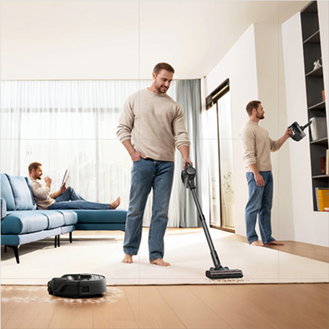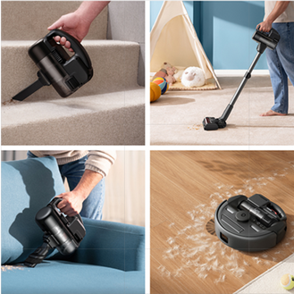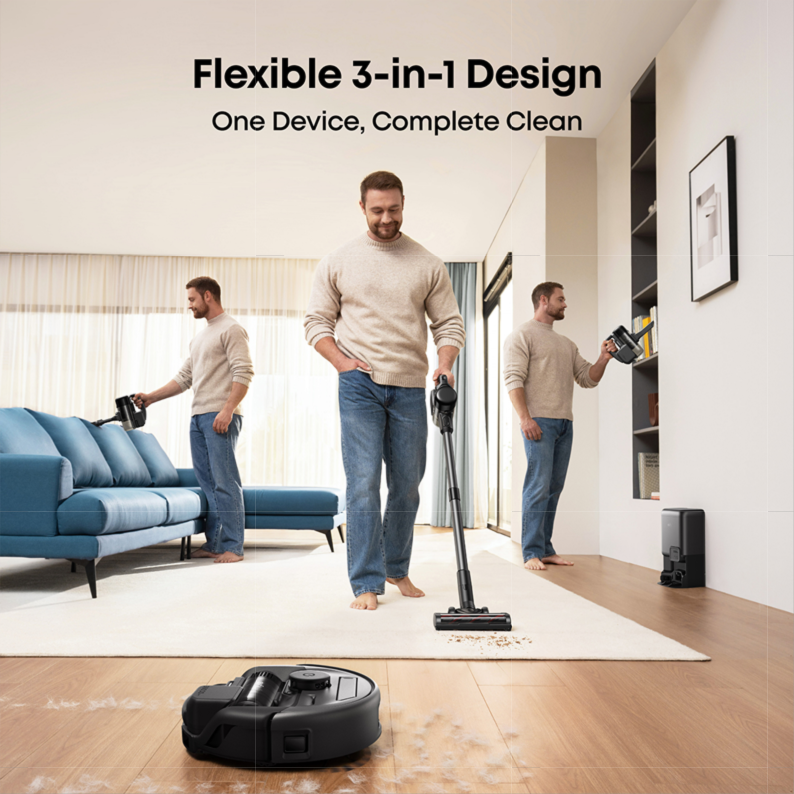 3-in-1 E20 can be easily transformed into three modes: a handheld vacuum, a stick vacuum, and a robot vacuum.