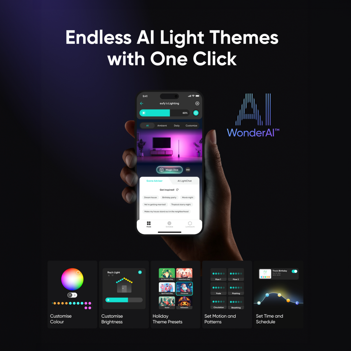 From festivities to chilling, the WonderAI™ instantly sets the mood based on your input, turning every moment into a memorable one.