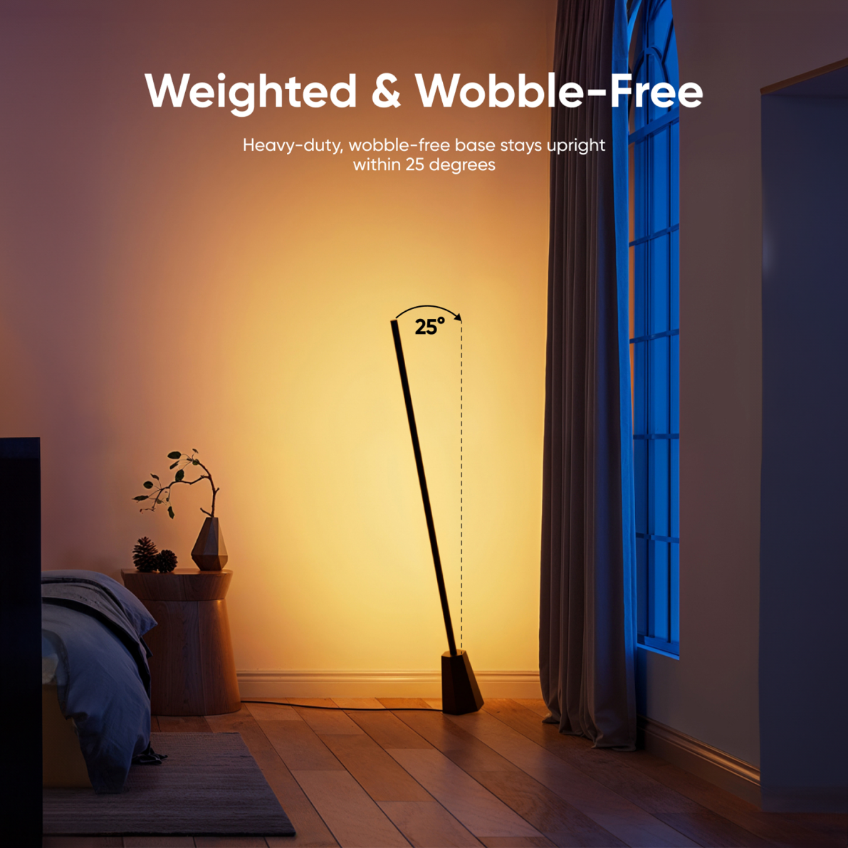 Heavy-duty, wobble-free base stays upright within 25 degrees, resisting accidental knocks.