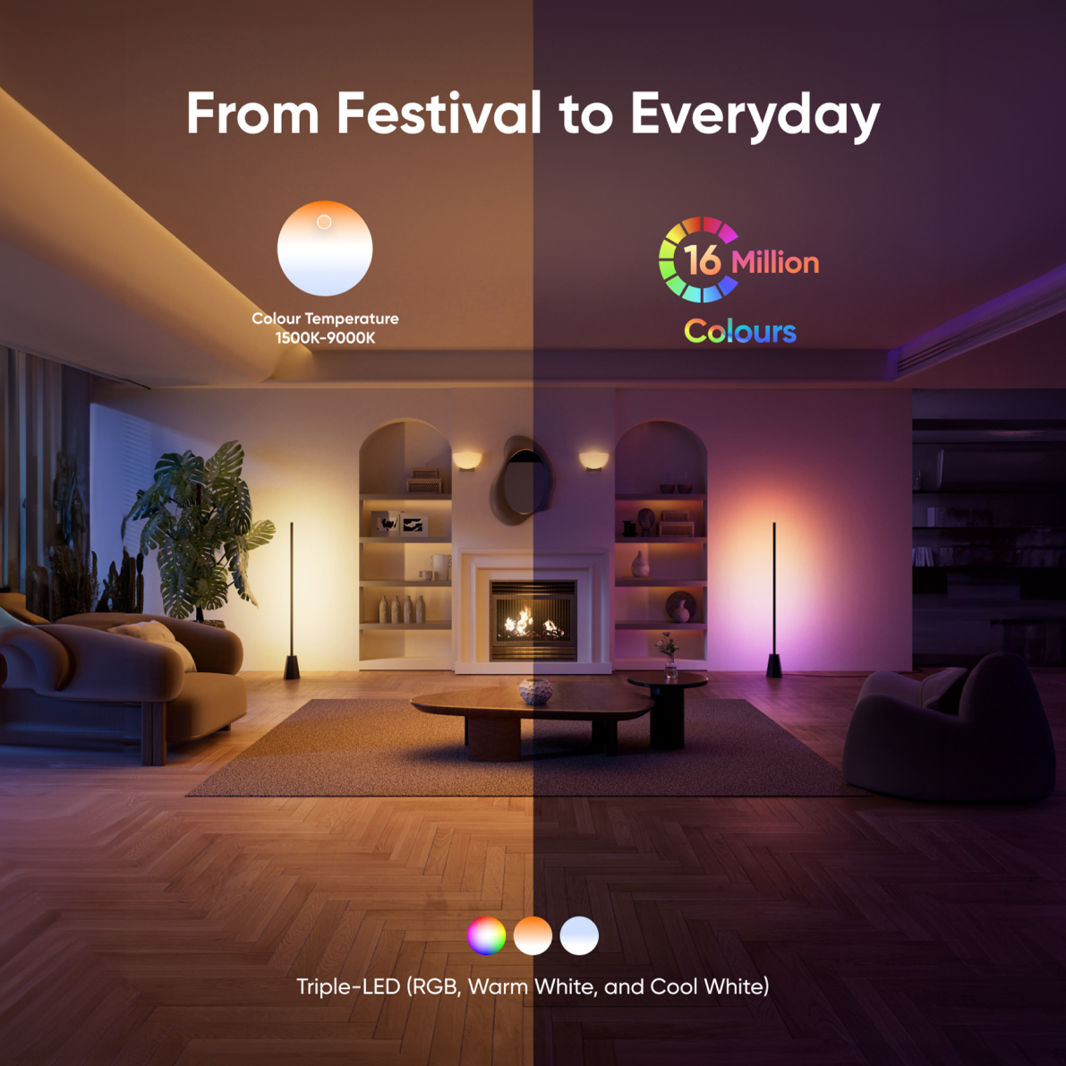 Blending RGB, cool and warm white LEDs, WonderShine™ provides brighter colours and a wide colour temperature range (1500K to 9000K).