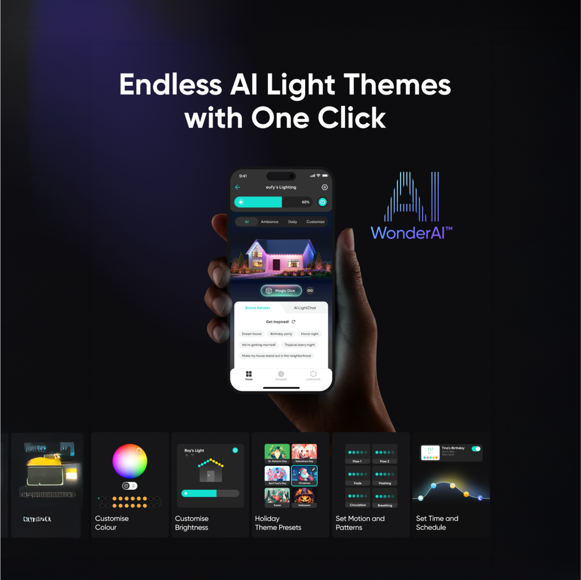 From festivities to chilling, the WonderAI™ instantly sets the mood based on your input, turning every moment into a memorable one.