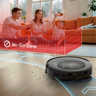 Designate specific areas as No-Go Zones, ensuring a seamless and uninterrupted cleaning process safely. *For best results, tidy up items like cords, socks and toys before starting the cleaning cycle.