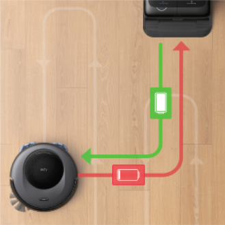 When the battery is low, C20 automatically returns to the station to recharge and then resumes cleaning where it left off.