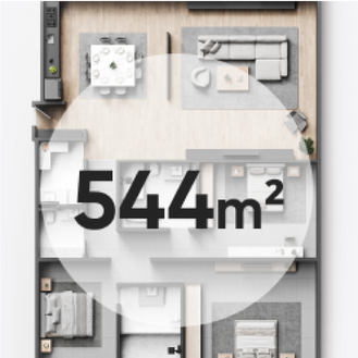 Enjoy a maximum runtime of up to 2.7 hours, covering areas up to 544m2.