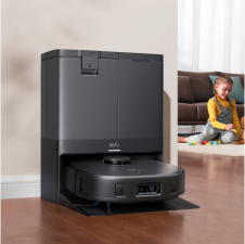 After being washed clean, the mop pads are dried with 45°C heated ait for 2 hours* to prevent bad odour and the growth of bacteria. *Data from testing conducted in eufy’s laboratory.