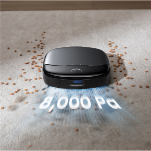8,000 Pa potent suction empowers deep cleaning on carpets and hard floors, effortlessly removing hair and deep-seated dirt*. *Actual performance may vary based on the floor type and dust level.