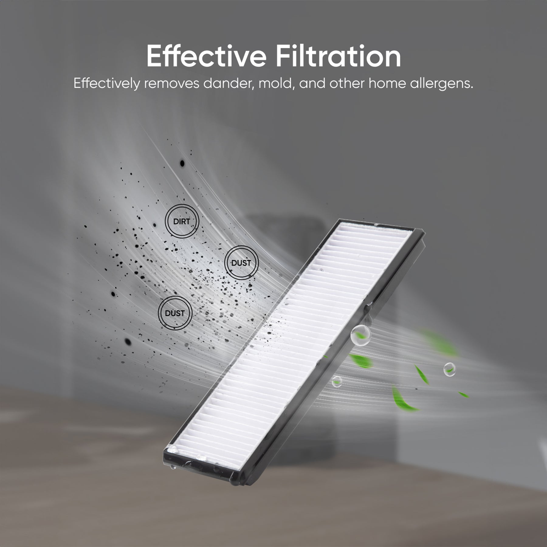 Effective Filtration: Captures fine dust and mold particles over 0.3 microns, achieving 95% filtration efficiency. Breathe fresher, healthier air at home.