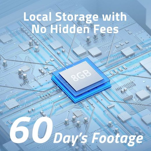 Spotlight Cam 2K Pro is a one-time purchase. There are no monthly fees or hidden costs. Everything is done on-device for complete security and transparency.