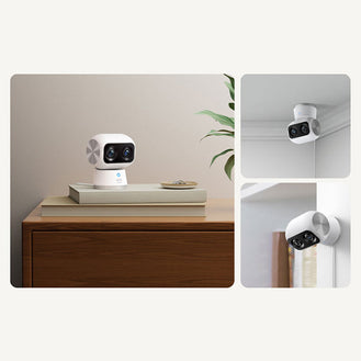 Watch entryways, the kids play area, or a pet's bed. Cycles between locations and keeps two eyes on the places that matter.
