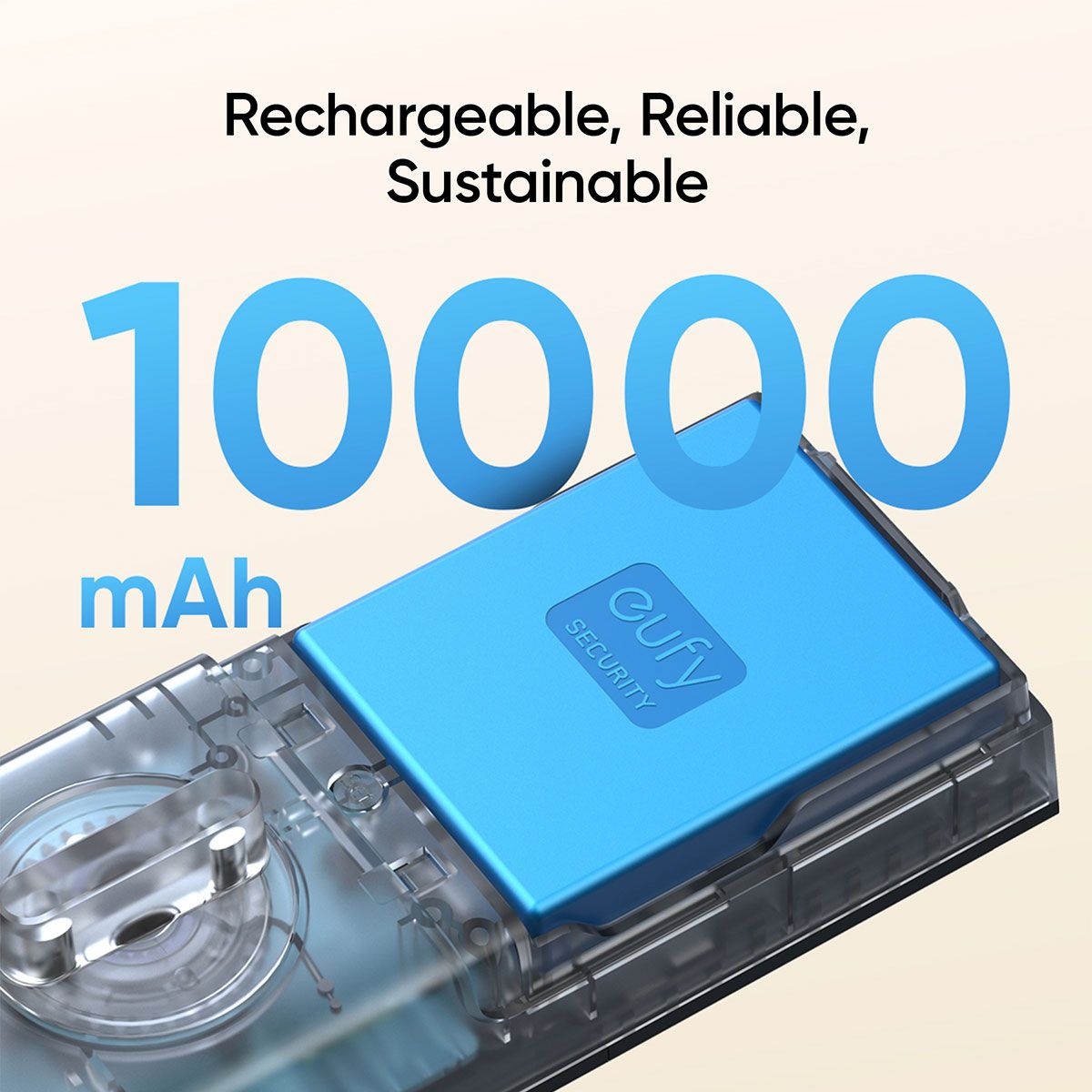 Low-battery notification at 10%. Power via USB-C if it runs out. 2 keys included just in case.