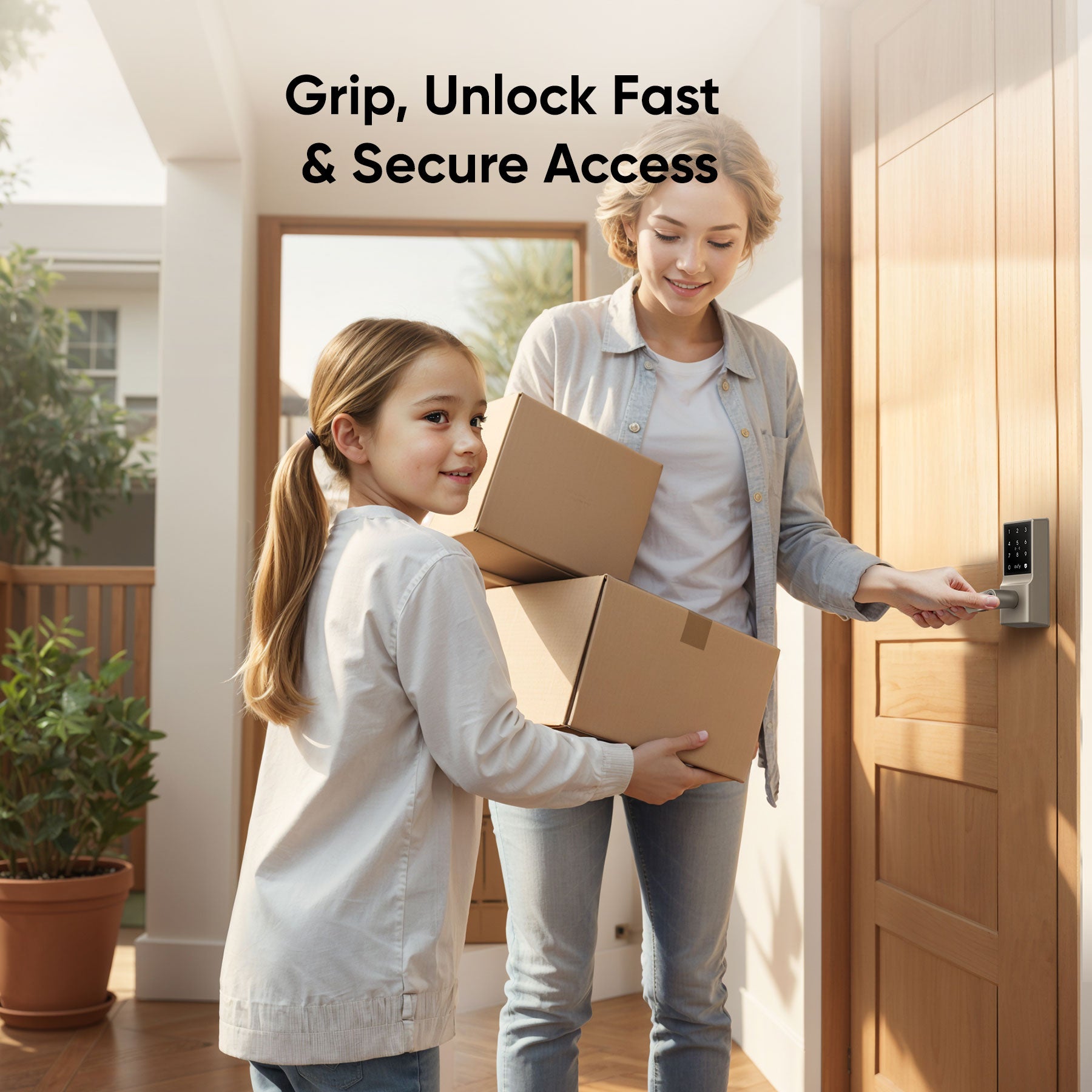 • Merges Fingerprint Identification with Handle Gripping: Experience an ultra-fast and effortless unlocking process. The lock continuously refines its recognition with each use, ensuring quick and hassle-free entry for both parents and kids.