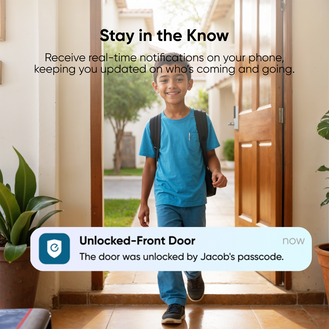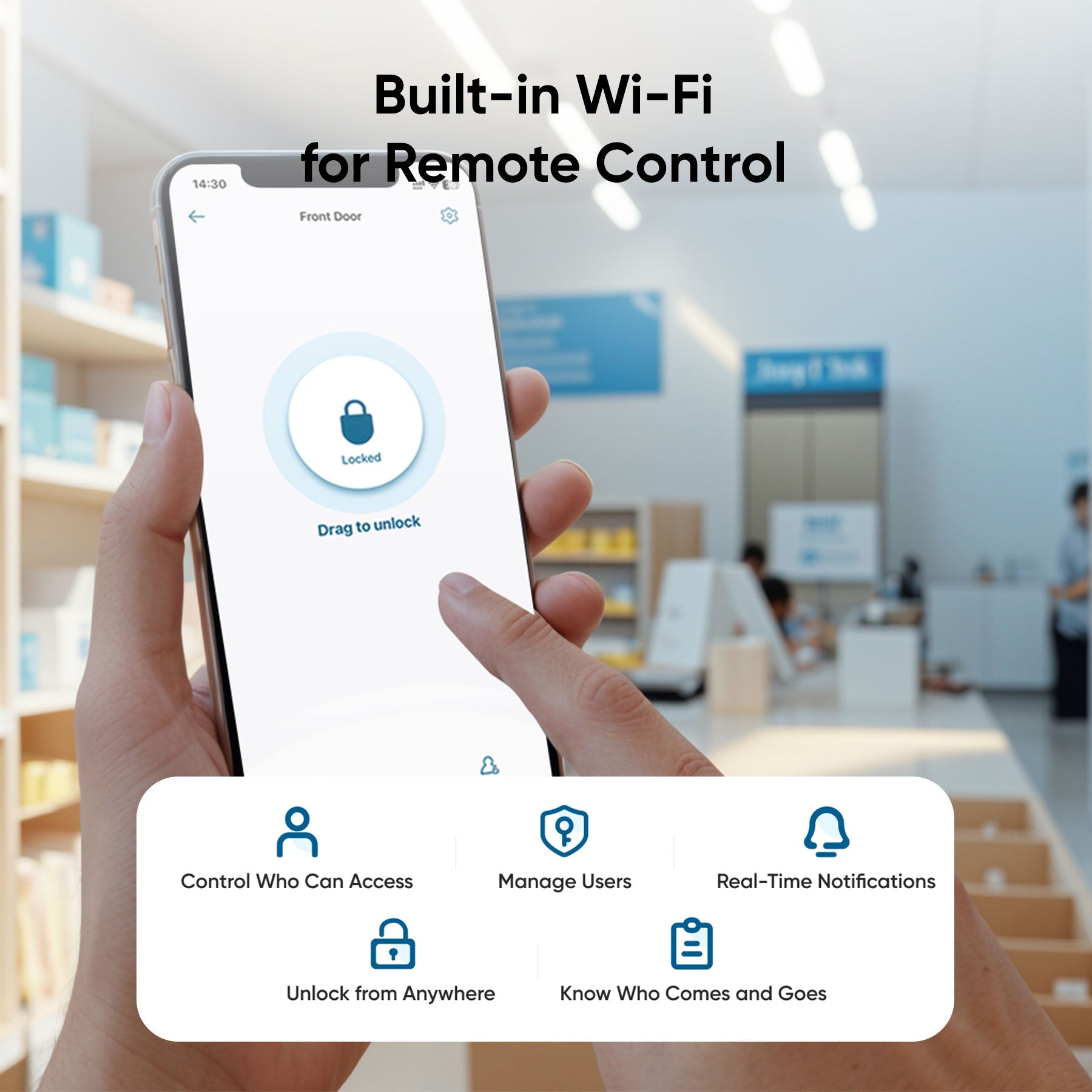 • Built-in Wi-Fi for Remote Management: Manage your interior doors and maintain home security from any location with access management, real-time notifications, and event history tracking.