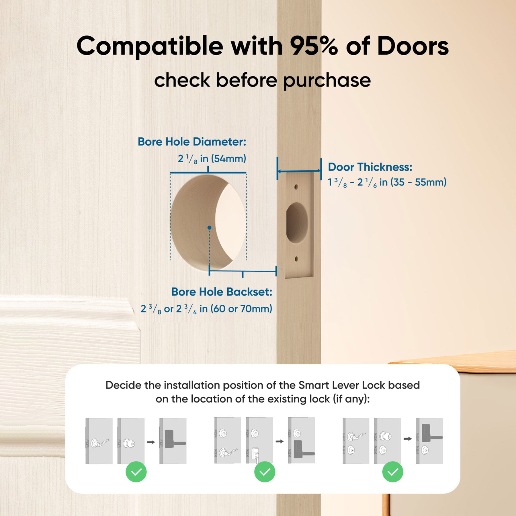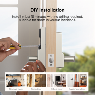 • More Compatible and Easy Installation: Smart lever lock is compatible with doors that open on the left and right. Perfect for securing garage doors, side doors, office doors, or basement doors, it offers a seamless fit and straightforward installation process. Note: This door lock is not compatible with glass and sliding doors.
