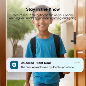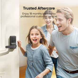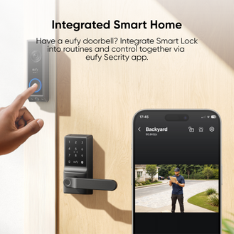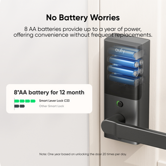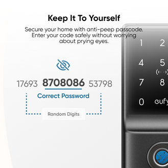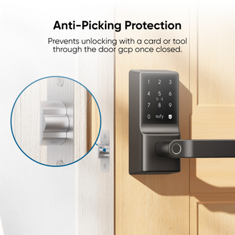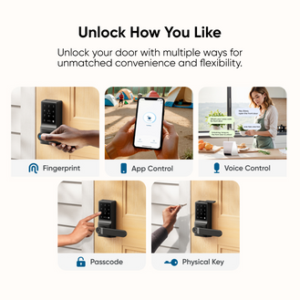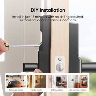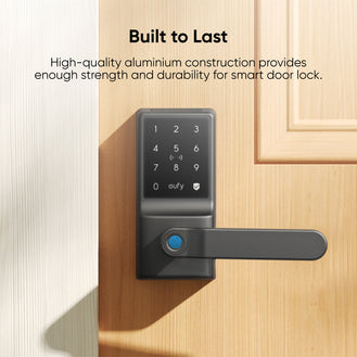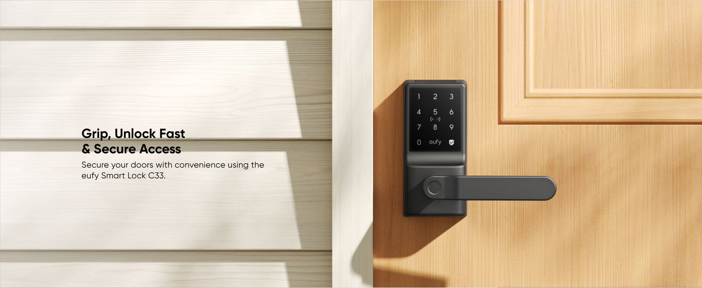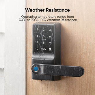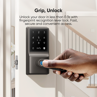 Secure your doors with convenience using the eufy Smart Lock C33, a fingerprint keyless door lock with handle, built-in Wi-Fi, app remote control, biometric door knob for entry doors, auto lock, and IP53 waterproof rating.