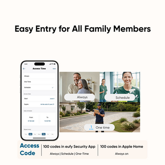 Create up to 100 customised codes for neighbours, family, and guests with eufy Security App. Simplify entry and keep your loved ones secure.