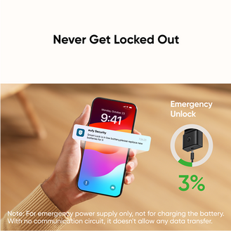 Use a portable charger to unlock your Smart Lock if the battery dies, with a hack-proof emergency power port to protect your privacy.