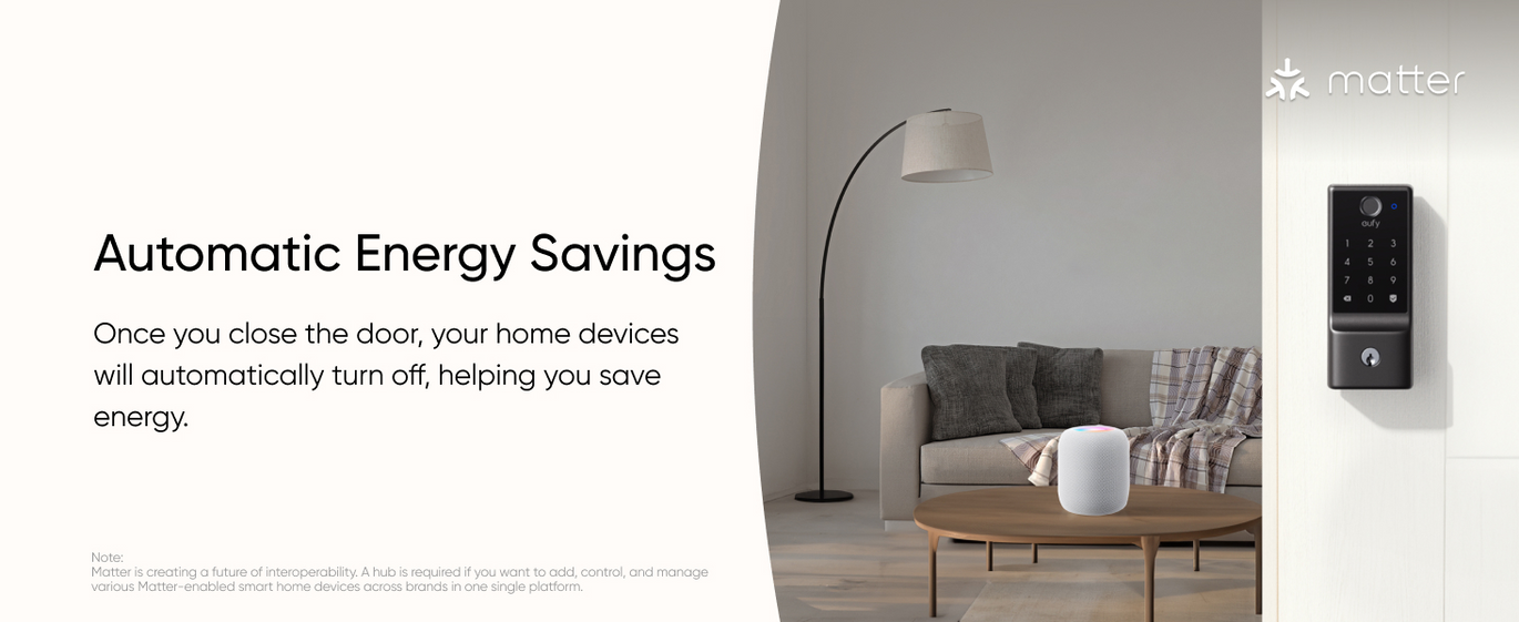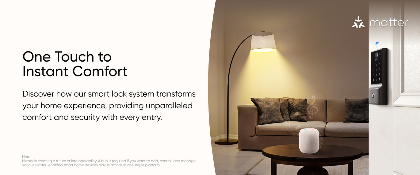 Effortlessly link our Matter-supported smart lock to your current smart home system using your existing hub. No extra hub needed, saving you money and adding convenience.