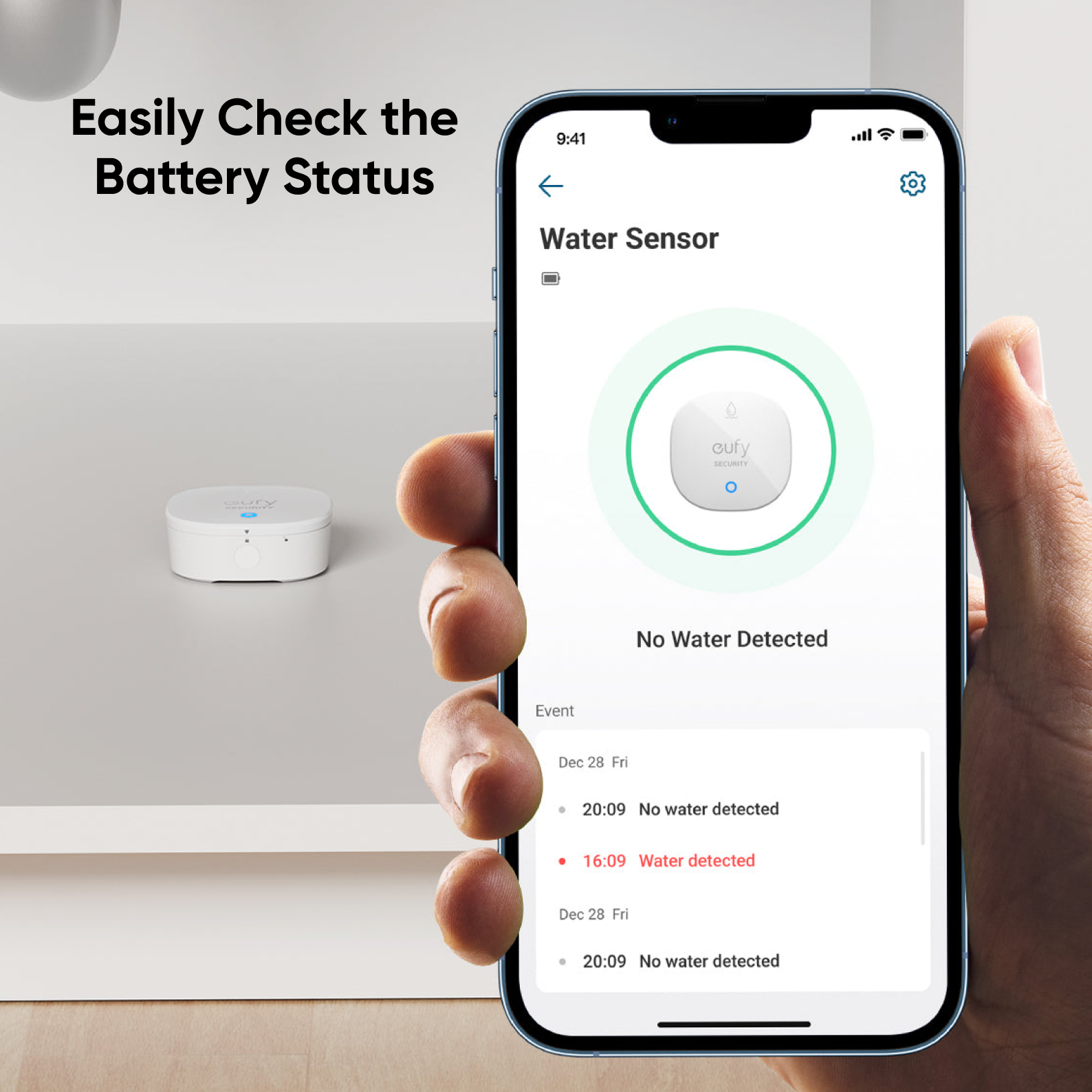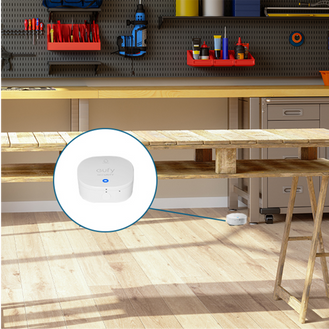 Stable connectivity with HomeBase is achieved through Sub-1G communication. If a leak is detected, it tells HomeBase, which emits a sound or sends a notification* to your phone.