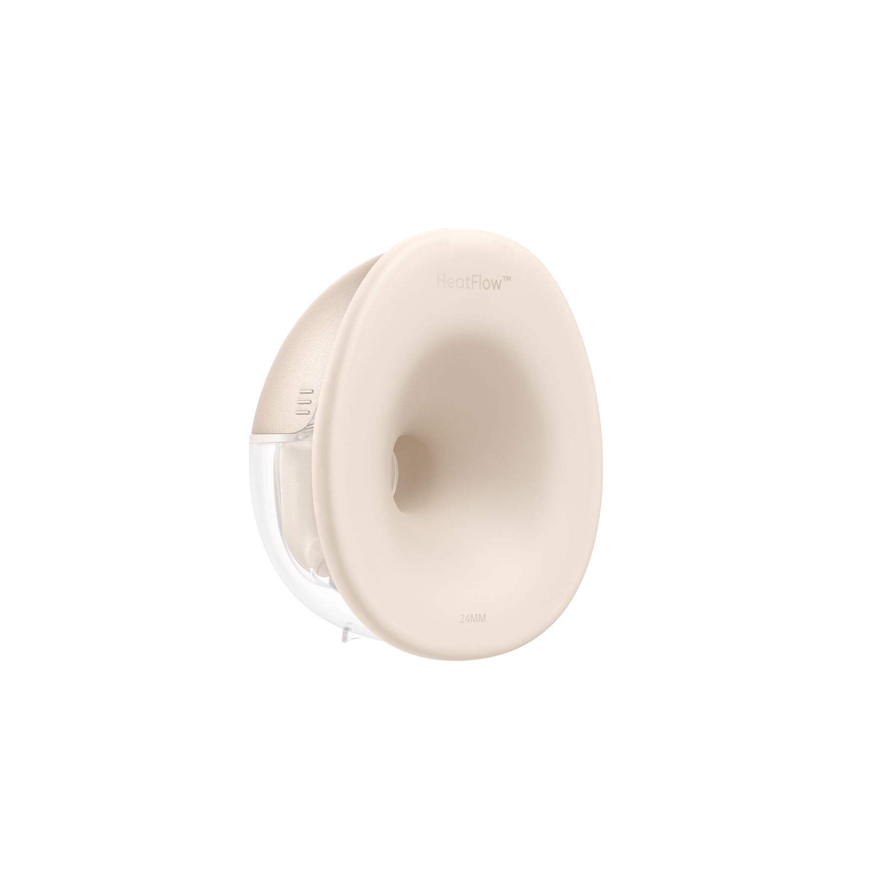 Food-grade, soft silicone that molds to the breast. With a 105° ergonomic design, it provides a gentle and nurturing experience. Fits all nipples with flange and sizing inserts ranging from 17mm to 24mm.