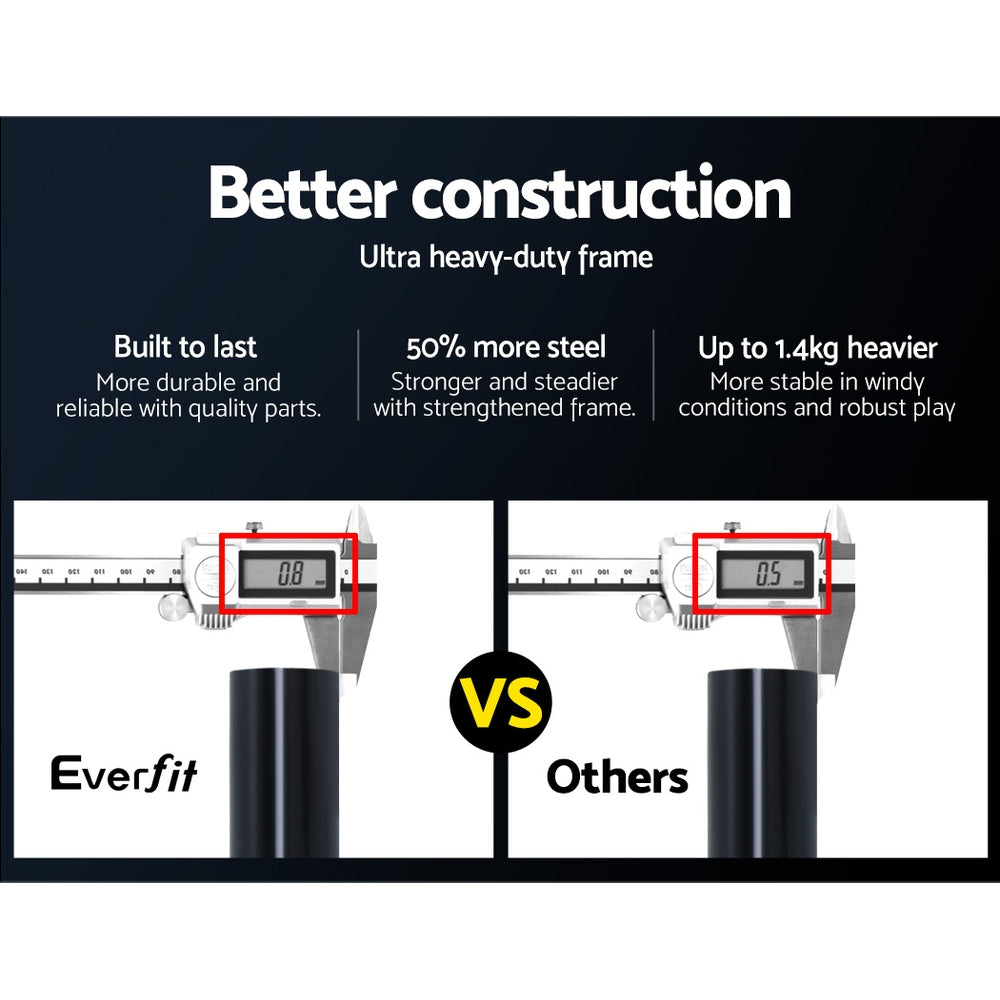 If you love the beautiful game, you will surely love the Everfit Portable Goal. Easy to set up, the portable goal comes with a sturdy powder-coated steel frame and a high-density PE net to practice your free kicks, penalty kicks and more. Get another one and you can have a five or seven-a-aside game in any flat open ground. The frame itself is made with 50% more steel for extra durability. Plus, the four ground stakes ensure that the entire ensemble stays firmly in place with robust play. Not least, you can carry the goal easily to any location for a game with the bonus carry bag.