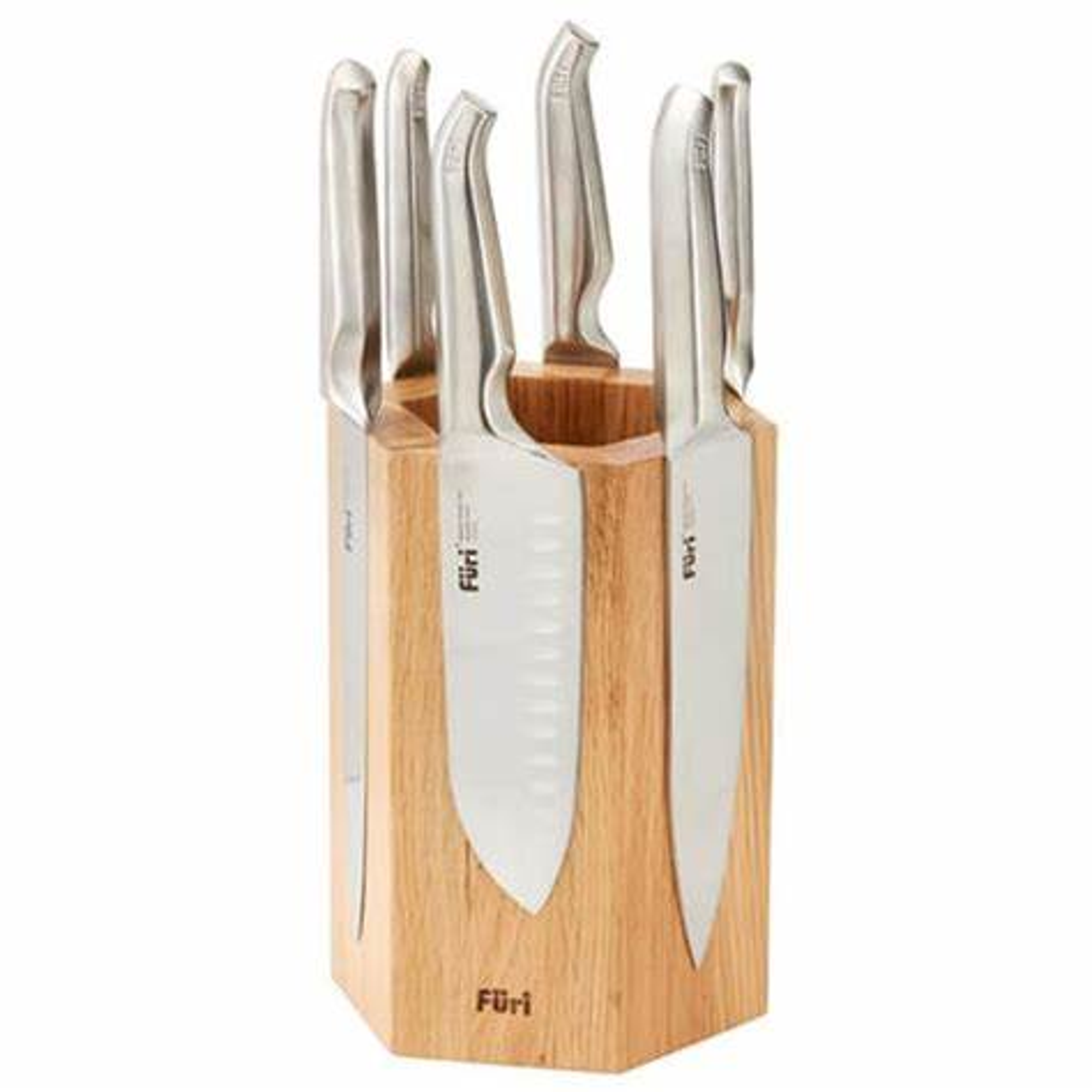 The versatile Furi Magnetic Hexagonal knife block securely stores knives in multiple configurations. Six knives can be stored on the outside for easy identification, or more discreetly inside; or store them in a combination of outside and inside.