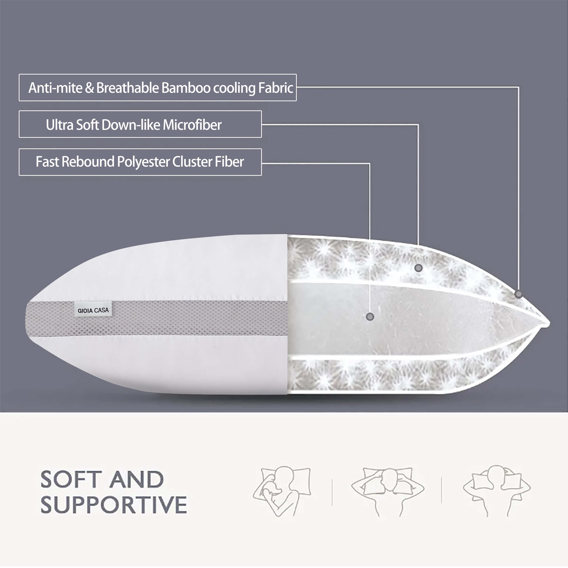 LUXURY BAMBOO COOLING TWIN PACK PLUSH DOWN-LIKE PILLOWS 45X70CM