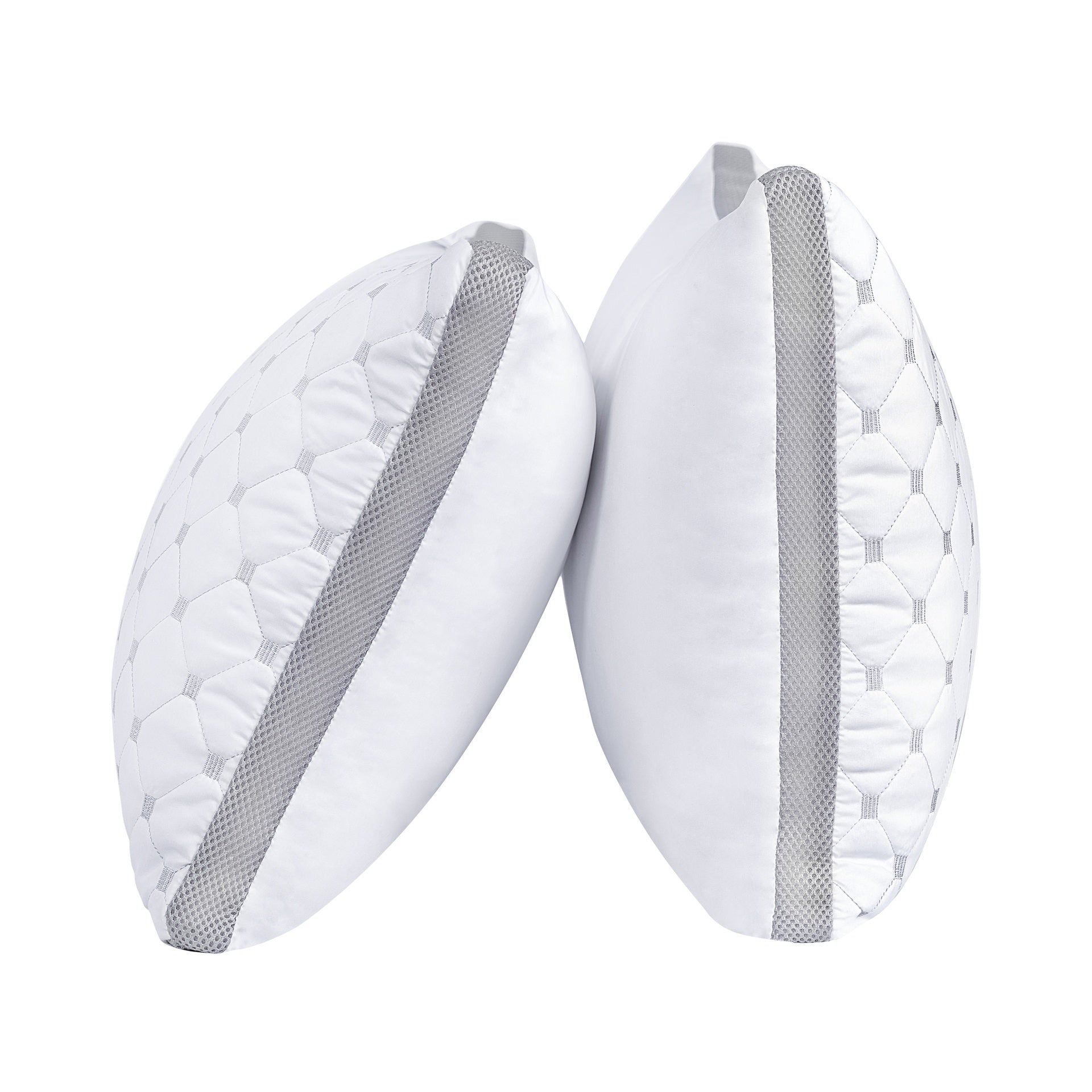 LUXURY BAMBOO COOLING TWIN PACK PLUSH DOWN-LIKE PILLOWS WITH 2 BONUS QUILTED WATERPROOF PILLOW PROTECTORS 45X70CM