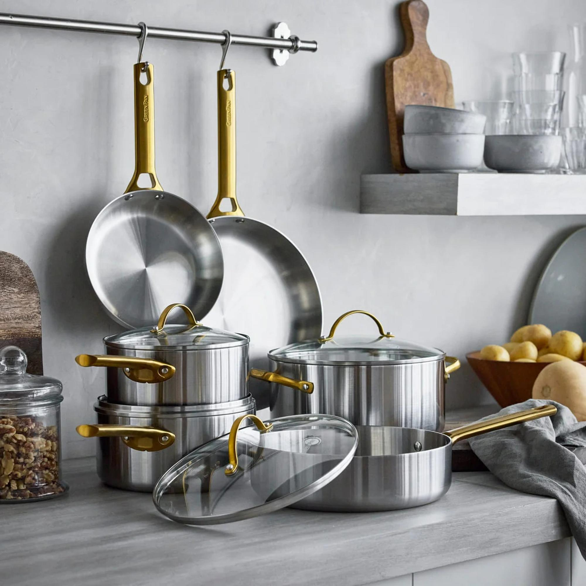 Padova Stainless Steel is a marriage of cutting-edge design and world-class performance. Crafted from professional-grade tri-ply stainless steel and designed to deliver professional results, this cookware set is ideal for everyday tasks as well as advanced techniques like deglazing and hob-to-oven transfers. The rim of the frypan is completely wrapped in stainless steel creating a durable edge. With proper care, it will last a lifetime. From quick weeknight dinners to more intricate cooking techniques like browning and oven finishing, Padova Stainless Steel is the perfect way to explore restaurant-quality flavours at home.