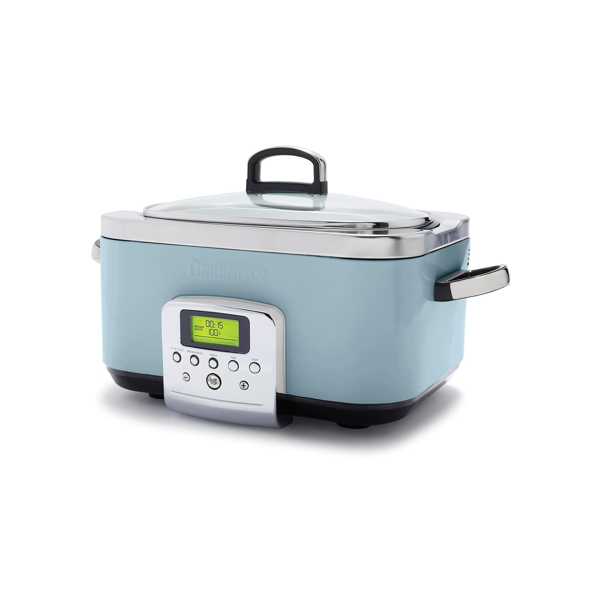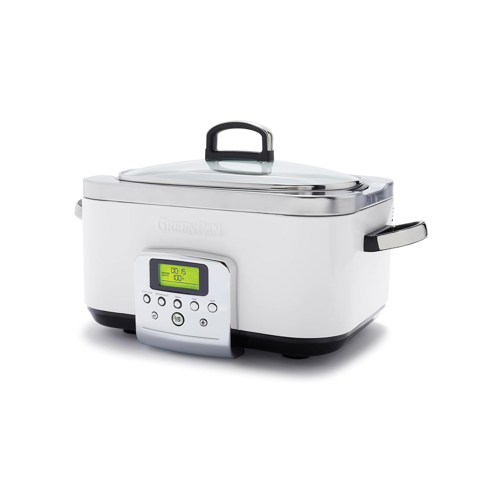 Flavour doesn’t happen in an instant. Create tasty dishes and family-sized meals with massive flavour—our slow cooker creates mouth-watering tastes with the press of a button. Sear your food to start, then cook it low and slow to draw out maximum flavour. Slow Cook, Roast, Brown/Sauté, and Steam with the easy-to-use presets! Plus, the large LCD screen makes finding your setting simple while the striking body is a countertop stunner. Take your time while cooking, then clean up quickly with Thermolon™ Volt, a healthy ceramic non-stick coating specially designed for kitchen appliances.