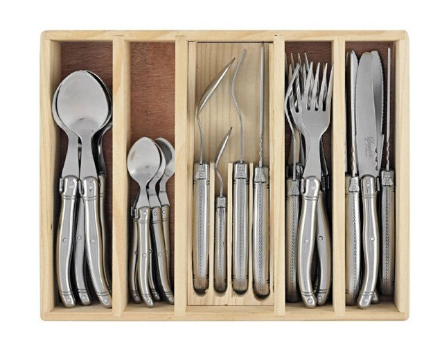 Laguiole Silhouette is made from 430 quality Inox Acier and ABS Food Safe Handles presented in our unique traditional pine wood presentation boxing associated with Laguiole Cutlery.