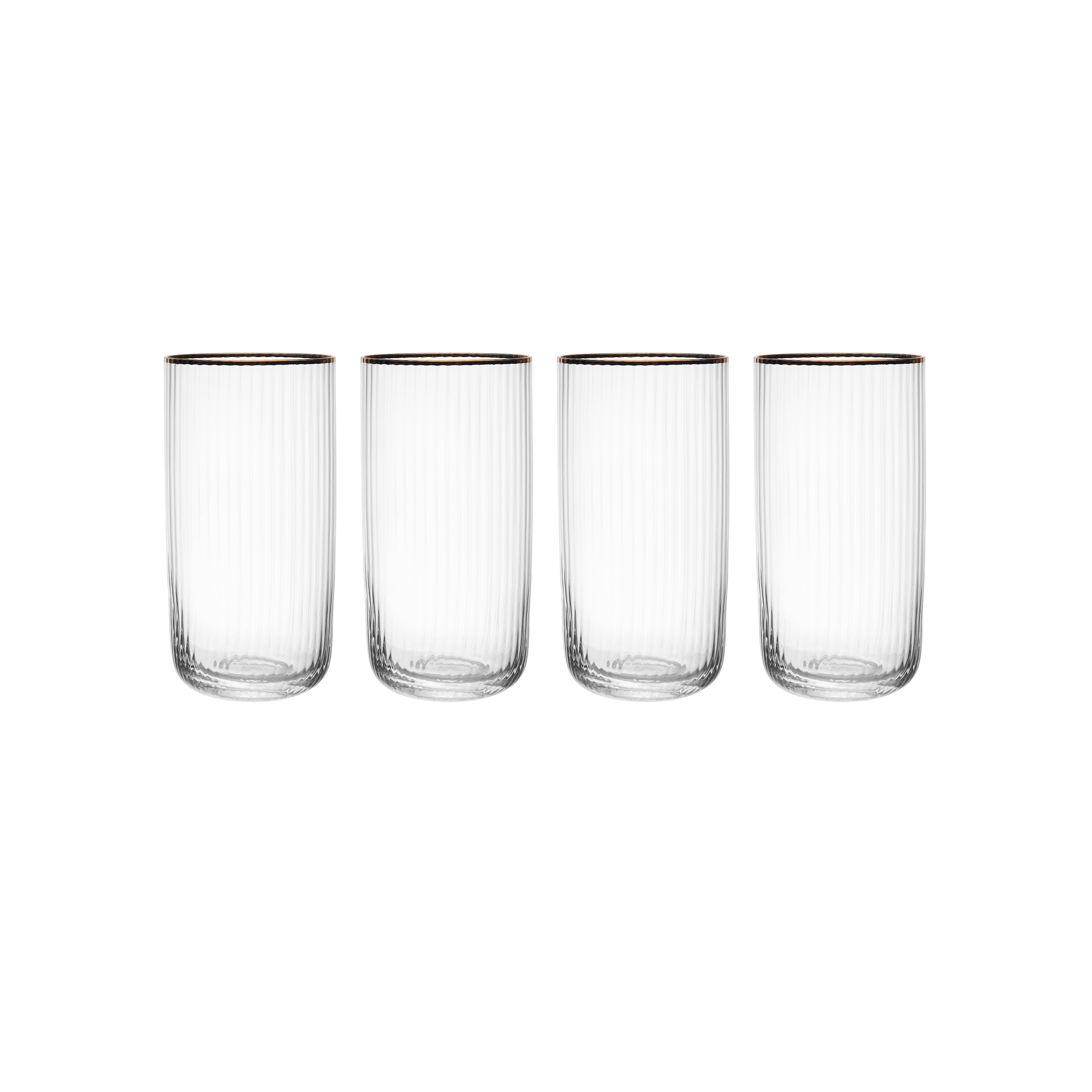 Crafted from premium lead-free crystal, each 400ml tumbler features a ribbed design that catches the light and a delicate gold rim for a touch of elegance. Ideal for special moments, the Sorrento collection adds effortless sophistication to any setting, whether entertaining guests or enjoying a quiet drink. This set of 4 comes with a 10-year guarantee and makes a timeless gift. Pair with matching Sorrento wine glasses and Champagne flutes for a complete glassware collection.