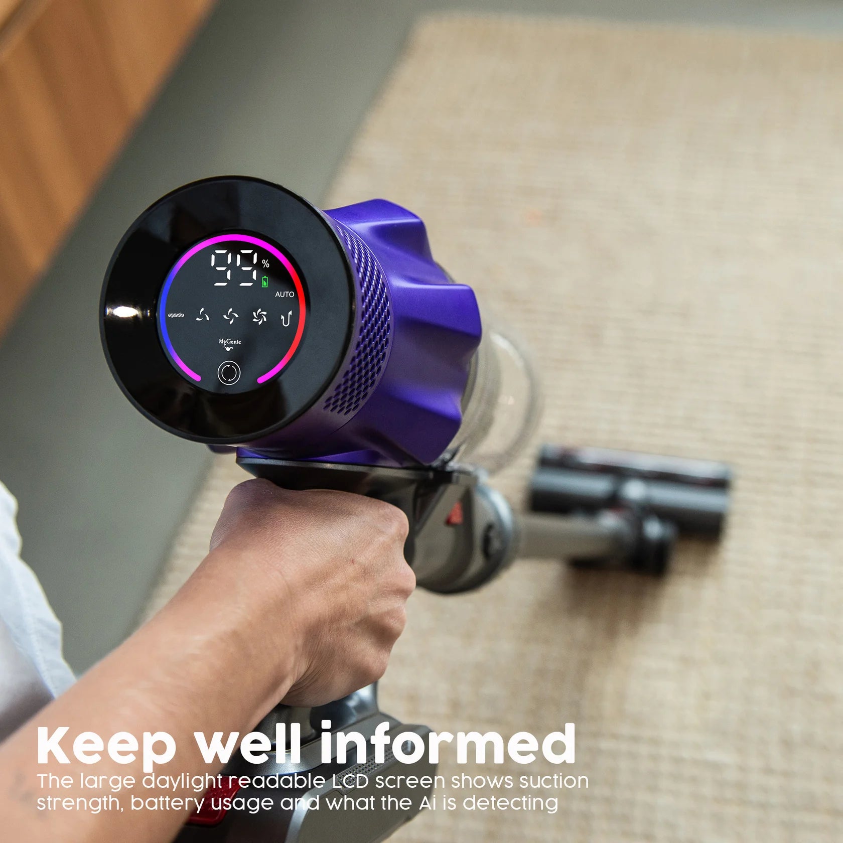 The MyGenie Sentinel Ai Pro is the intelligent way to clean your home. Powered by a 400W brushless motor with up to 33kPa suction, it tackles deep-set dirt, pet hair, and debris with ease. Switch between Eco, Medium, or Max modes — or let the Smart AI Dirt-Sensing Technology automatically adjust suction in real-time for maximum efficiency and battery life.