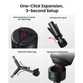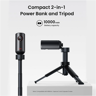 10,000mAh Power Bank and Tripod all in one compact unit.