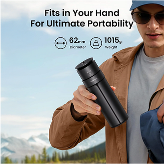 At only 62mm diameter and 1015g, it easily fits in your hand for ultimate portability.