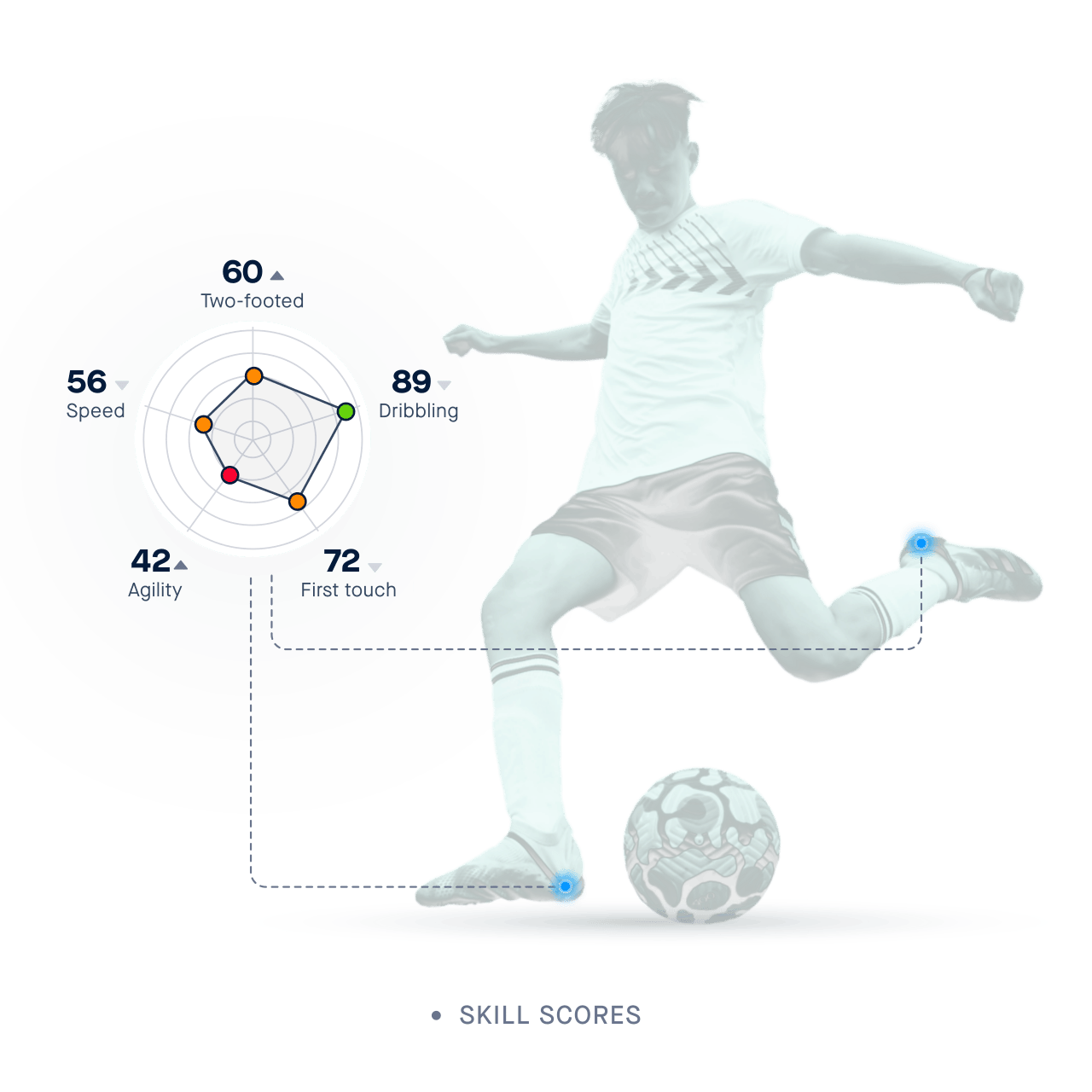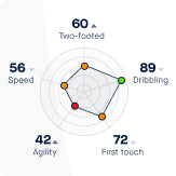 View personalised skills score based on these key skills: Two-footed, Dribbling, First touch, Agility, and Speed