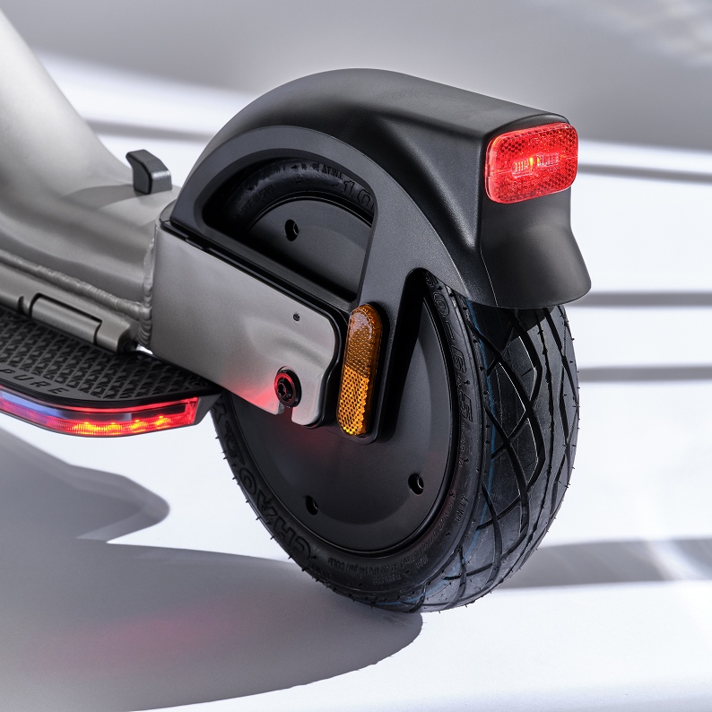 Dynamic handlebar and footpad indicators ensure signalling is clear and visible. A bright 150 lumens headlight and rear brake light help you navigate confidently in all conditions.