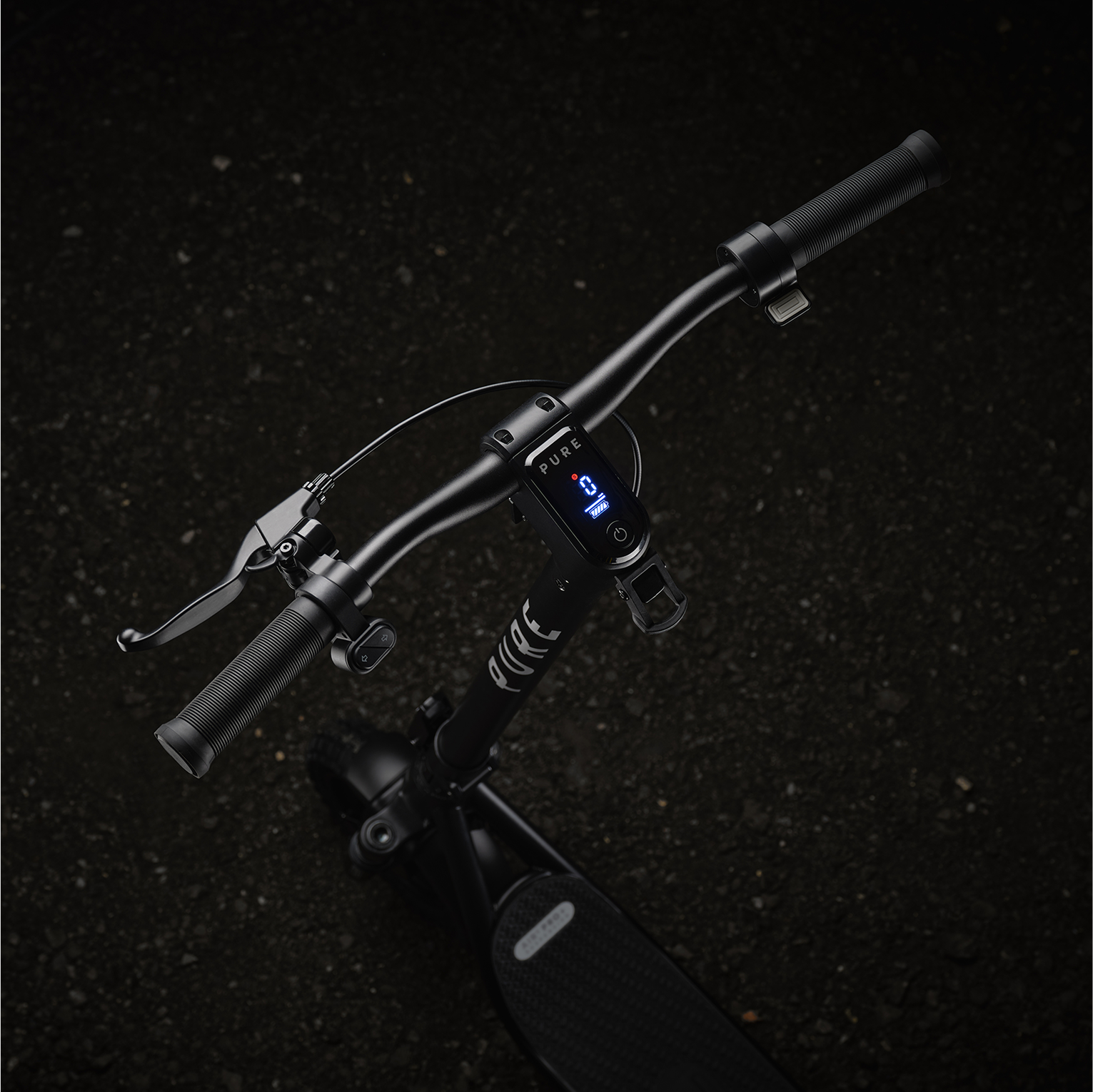 The LED screen gives you at-a-glance updates on your speed, driving mode, battery life and maintenance. Connects to the Pure app to give you real-time ride metrics.