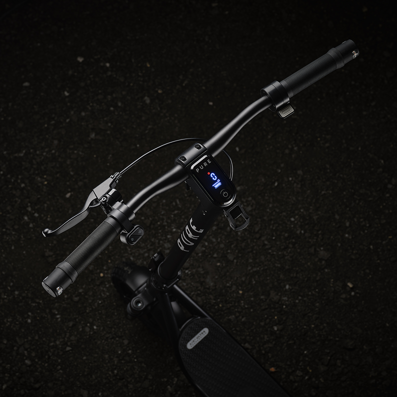 The LED screen gives you at-a-glance updates on your speed, driving mode, battery life and maintenance. Connects to the Pure app to give you real-time ride metrics.