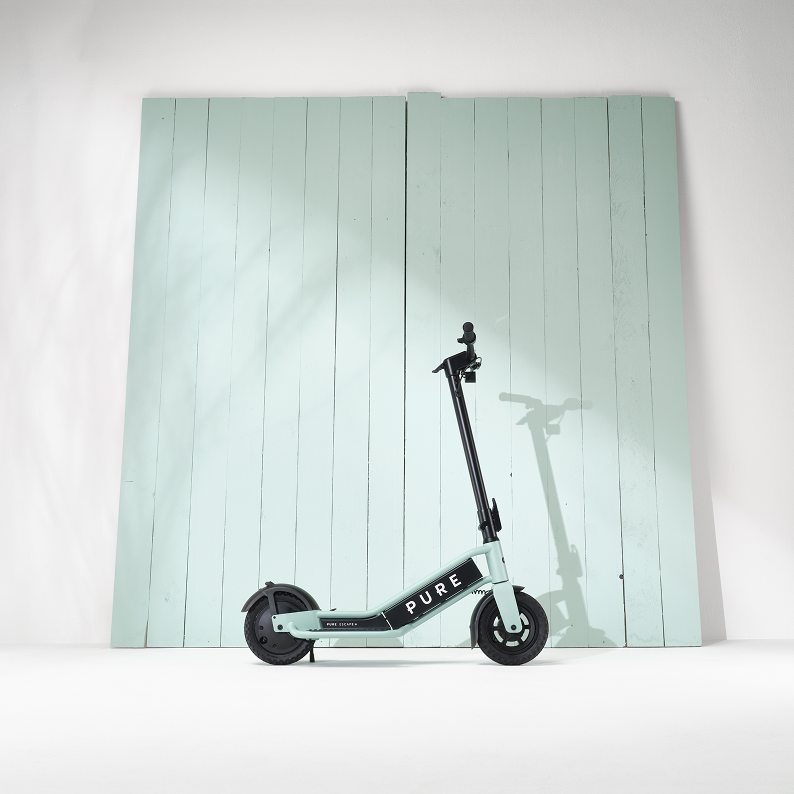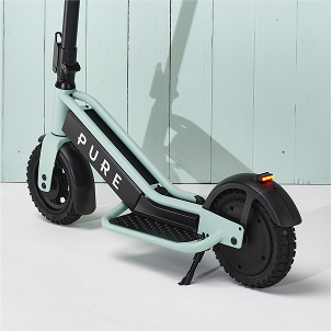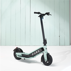 The Pure Escape+ e-scooter delivers up to 50 km (31 mile) one-charge range. Complete with improved cutting-edge battery technology and featuring a capacity of 12Ah at 36V for longer riding on one charge.