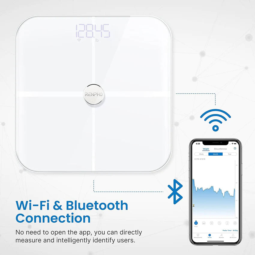 Step on the scale to save your data via WiFi and then sync to the app via Bluetooth connection later