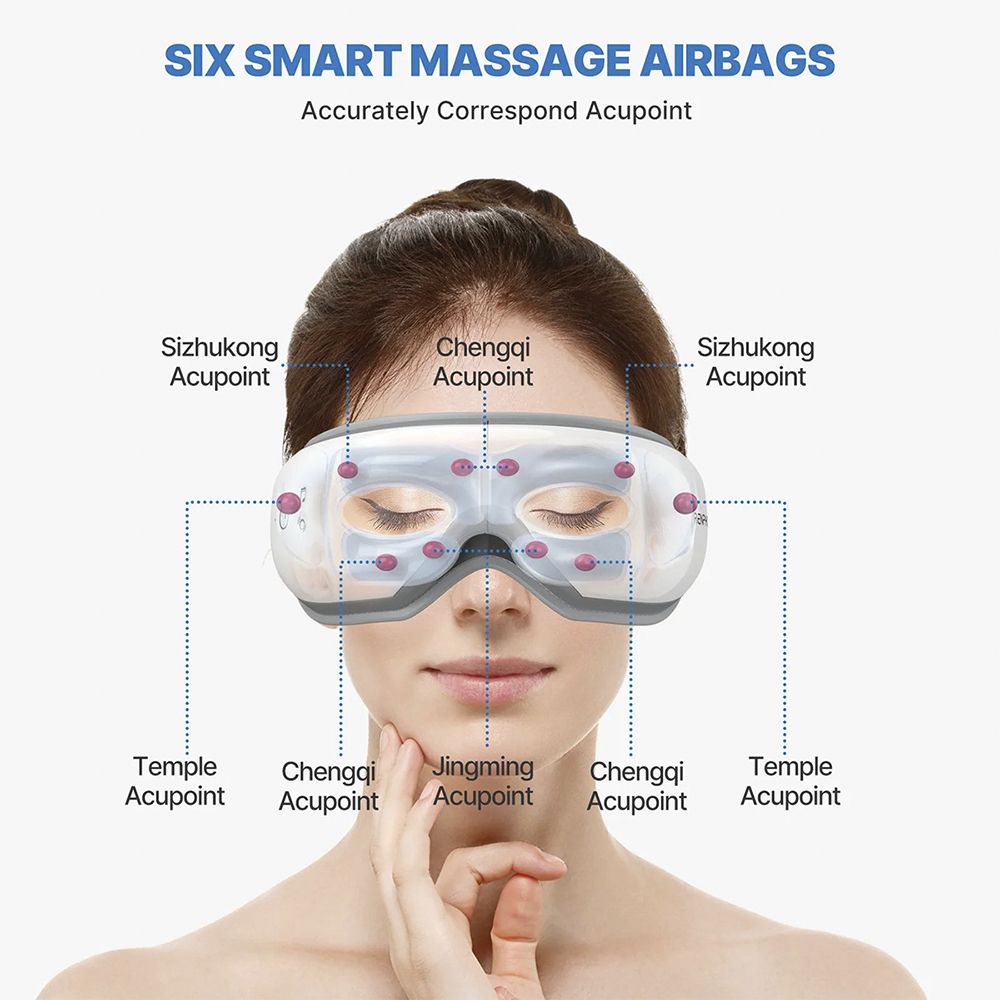By massaging your CuanZhu/ SiZhuKong/ Temple/ ChengQi/ JingMing acupoints, the RENPHO Eye Massager helps to alleviate headaches, eye strains and eye puffiness so that your eyes can be fully relaxed after a long day of work or study.