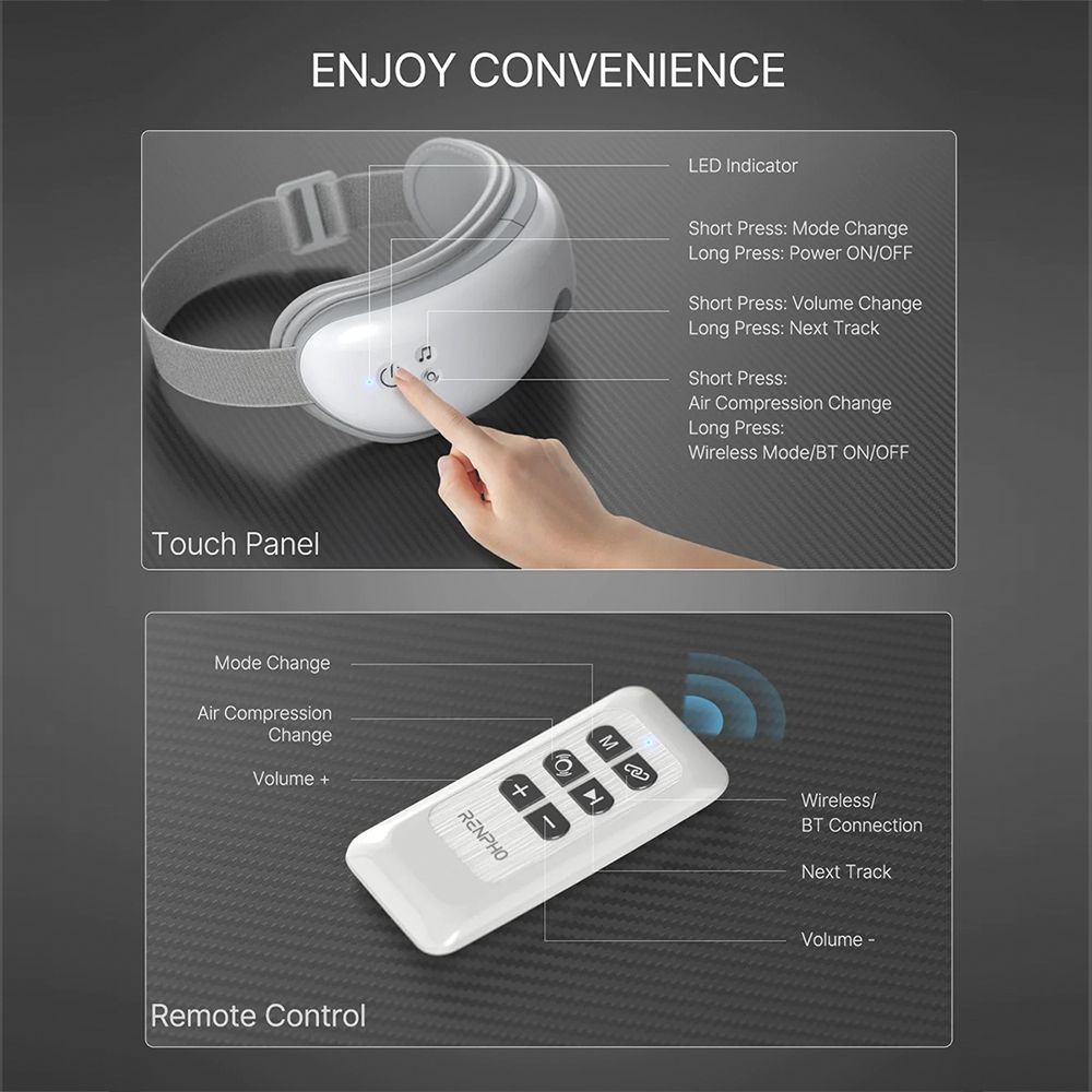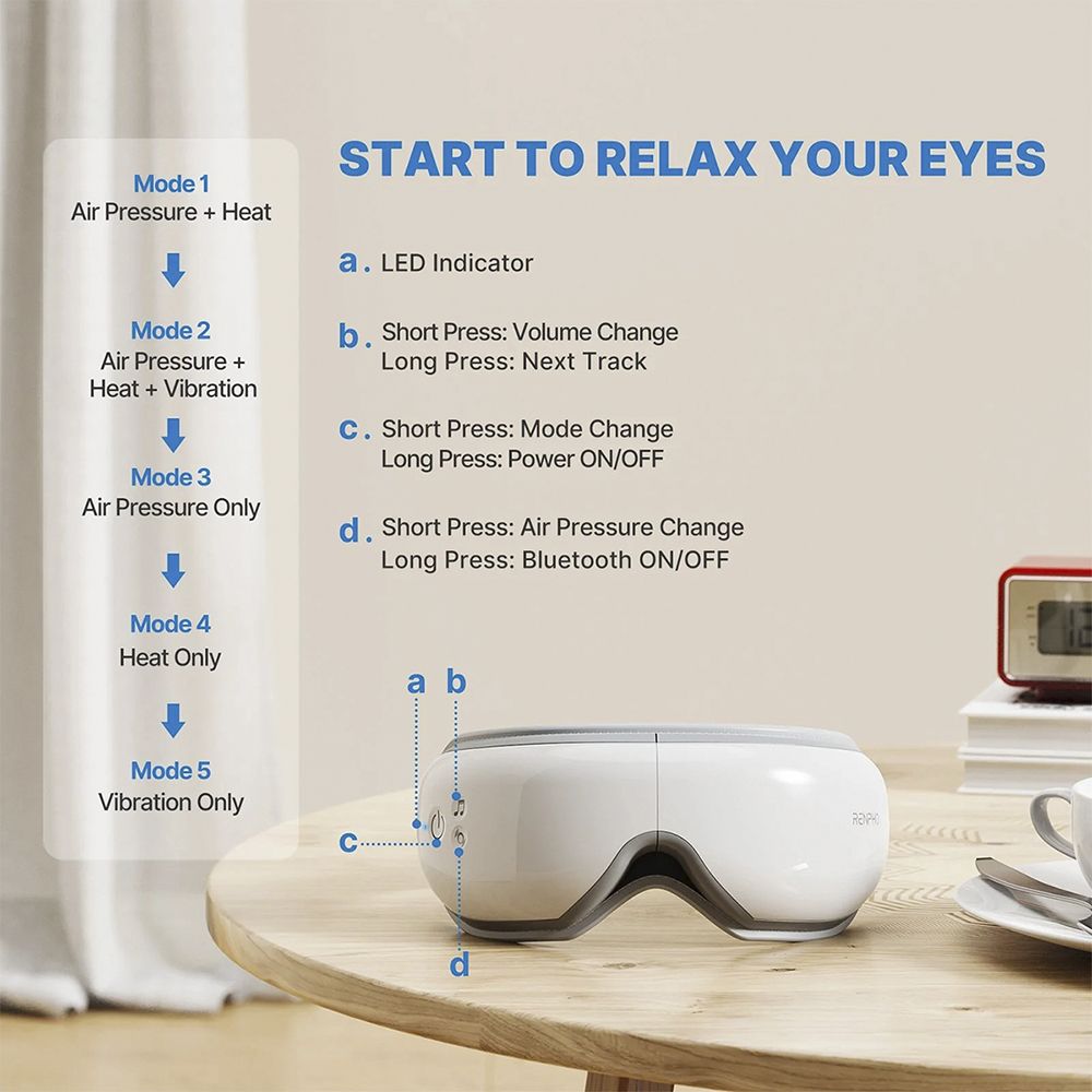 Connect the RENPHO Eye Massager to your devices via Bluetooth to play any music of your choice. The built-in speakers and pre-recorded sounds will also take your relaxation to the next level.