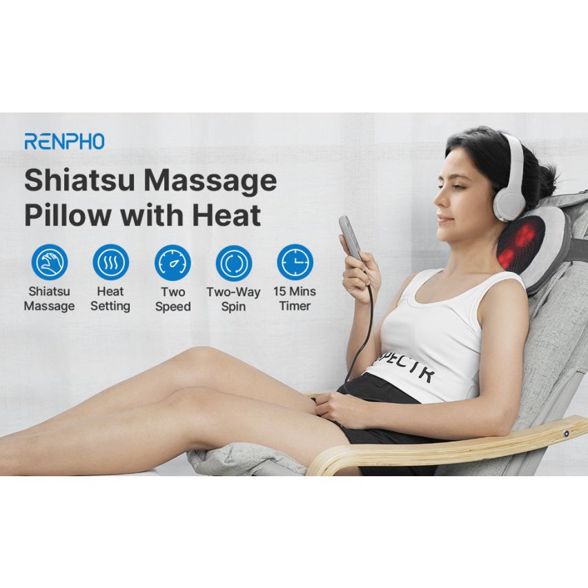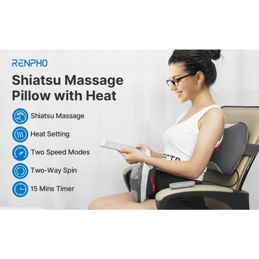 Relieve muscle aches and pains with the RENPHO Heated Massage Pillow. With a heating feature and kneading massage nodes, this comfortable pillow provides the benefits of a professional massage while you rest.