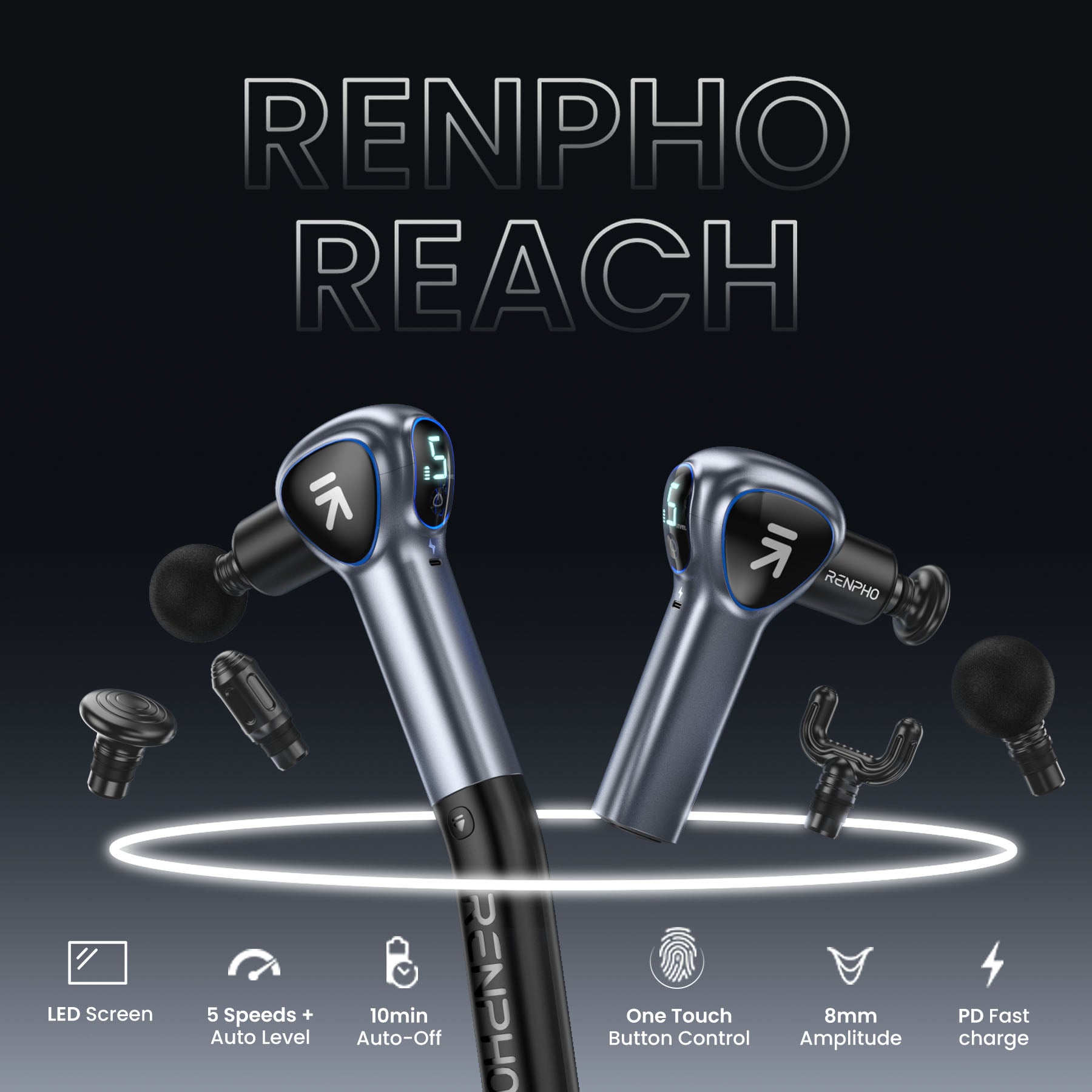 Elevate your self-massage routine with the RENPHO REACH MASSAGE GUN – your customisable, powerful, and versatile companion for ultimate muscle relief.