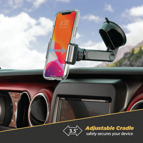 Every vehicle and every driver is different and the Extendo adjusts to perfectly suit each one. Simply attach the base to your windshield, dashboard, or desk and extend/contract the arm length, adjust the angle, and then lock it in the place when you find your perfect viewing angle.